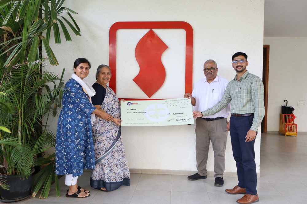 - Company Secretary and Mr. Ameet Khandekar – Assistant Company Secretary handing over cheque to Sr. Lucy Kurien & Team of Maher. Paid donation of Rs. 3,00,000/-