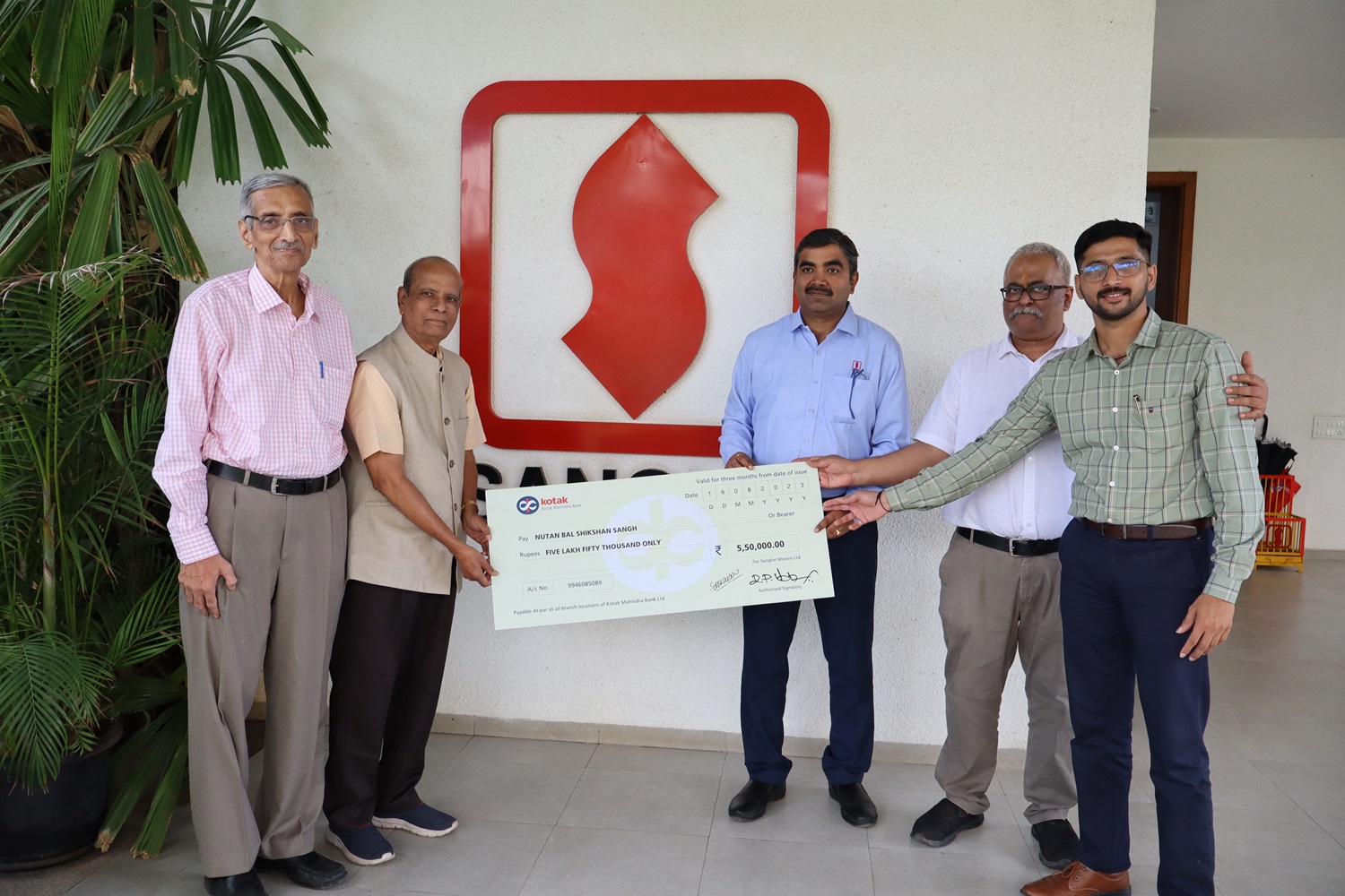 - Financial support to 5 Nos. SSC Passed students who have secured more than 90% marks in SSC Exam. The employees of Sanghvi Movers Ltd. have contributed a sum of Rs. 16365/- while company (SML) have donated a sum of Rs. 25000/- towards this noble cause.