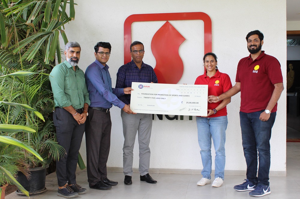 - Mr. Sham D. Kajale – Joint-Managing Director & CFO, Mr. Abhijit Sawarkar and Mr. Akshay Pore handing over cheque to Ms. Anoushka Parikh & Mr. Shubhashish Phanse – OGQ . Paid donation of Rs. 25,00,000/-