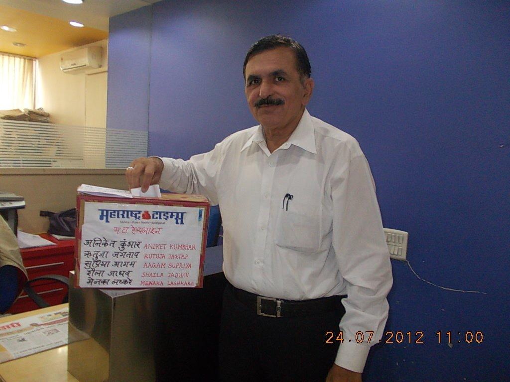 - Mr. Manish Pandey – Vice President Sales & Marketing, Mr. Rajesh Likhite – Company Secretary and Mr. Ameet Khandekar – Assistant Company Secretary handing over cheque to Mr. Sham Wagh & Mr. Anant Gosavi – Nutan Bal Shikshan Sangh. Paid donation of Rs. 5,50,000 /-